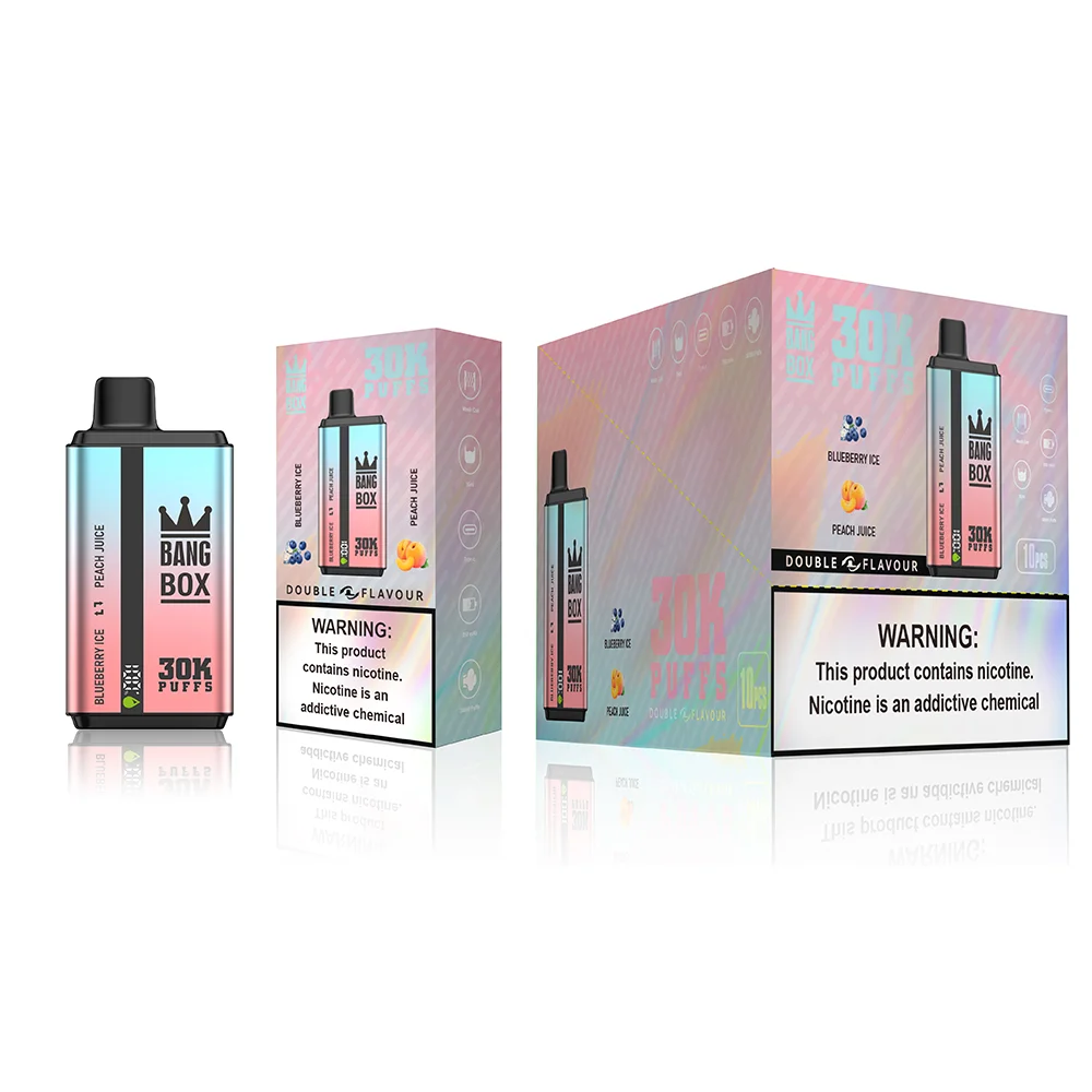 Il Bang Box 30000 Puffs è un dispositivo vape monouso a doppio gusto con un serbatoio da 35ml. Presenta una resistenza a maglia da 0,8 ohm e una batteria ricaricabile da 850mAh. Il dispositivo include un bocchino girevole e una finestra di visualizzazione intelligente.