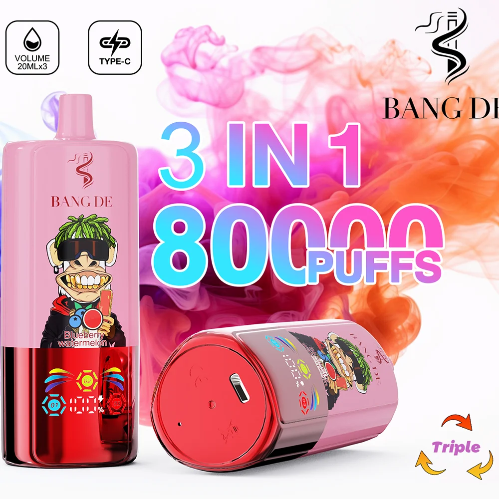 Bang DE Triple 80000 Puffs Vape | 3 Gusti in 1 Ampio Display | Design a Scimmia