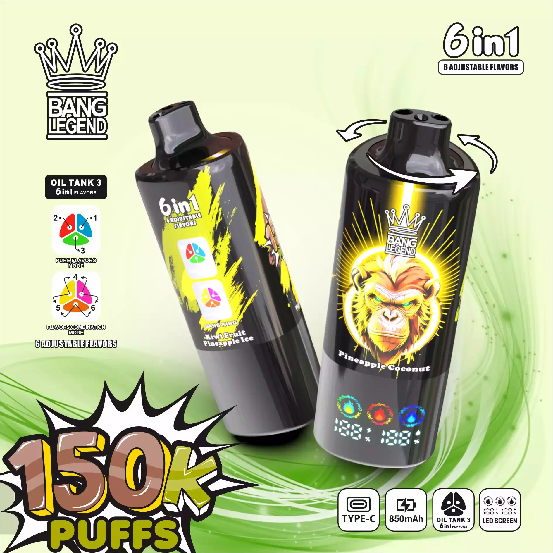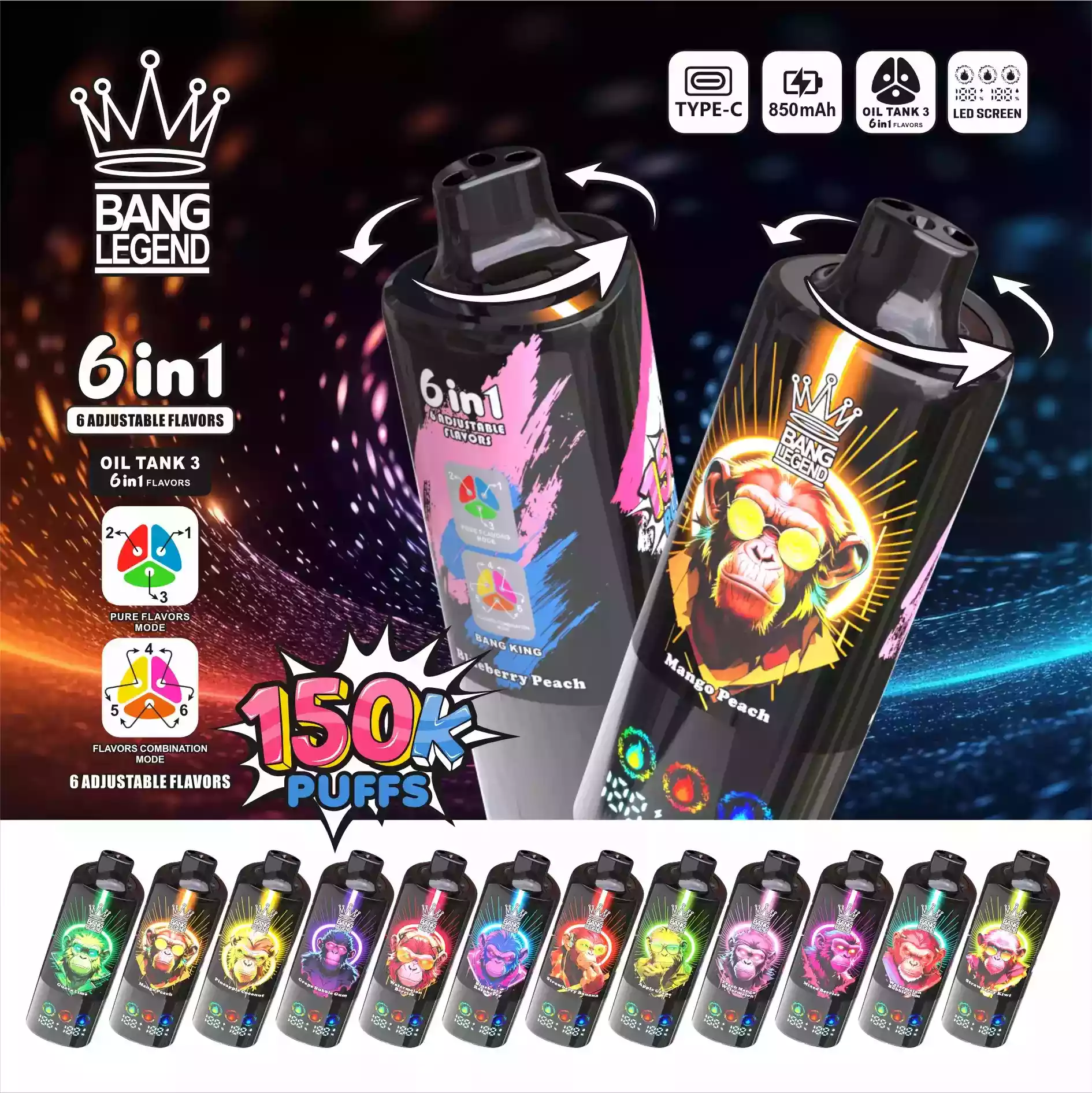 BANG Legend Puff 150000 Tiri Vape | 6 in 1 Gusti Vape Smart Screen Europeo